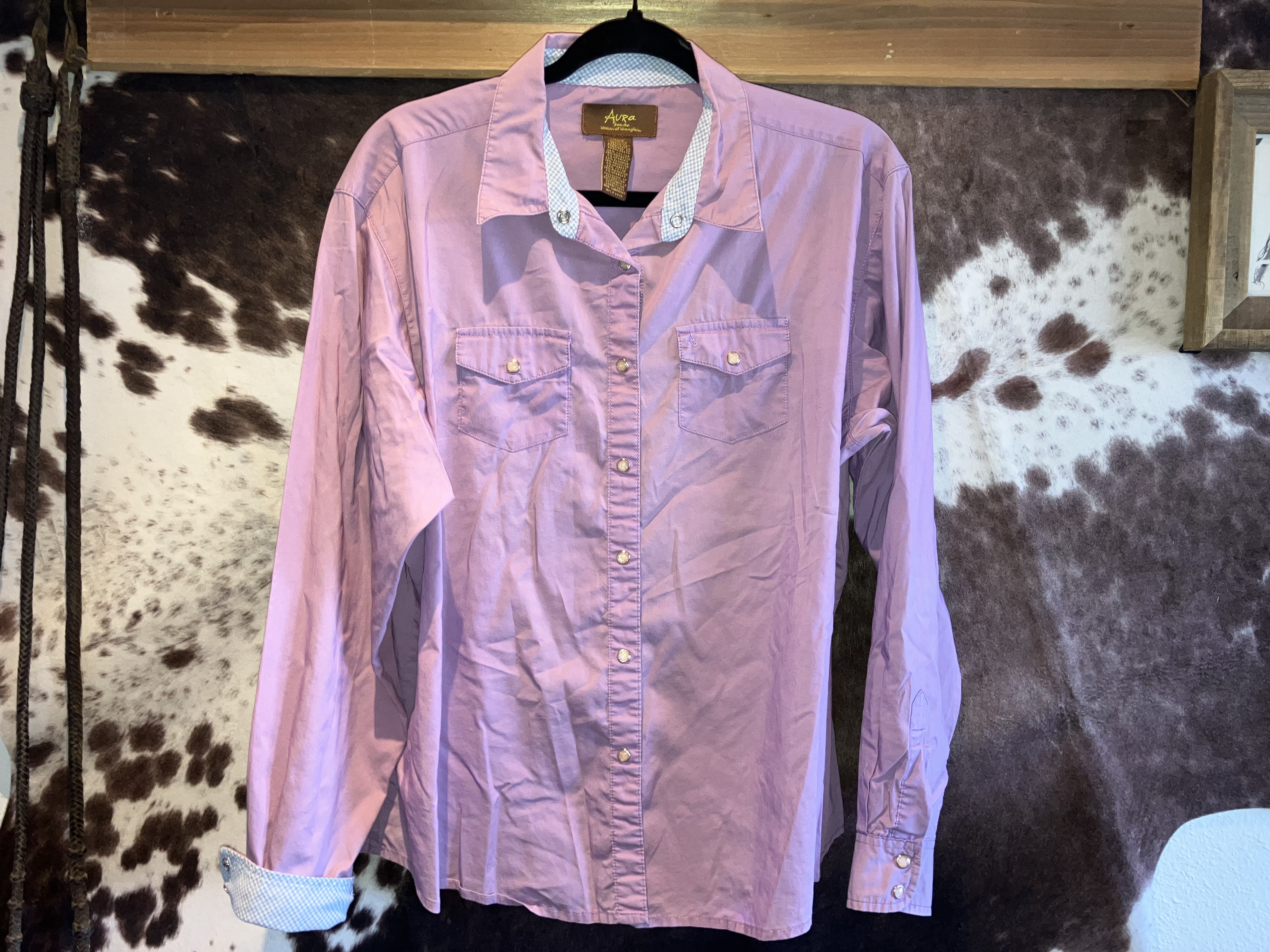 Vintage lavender western pearl snap shirt.