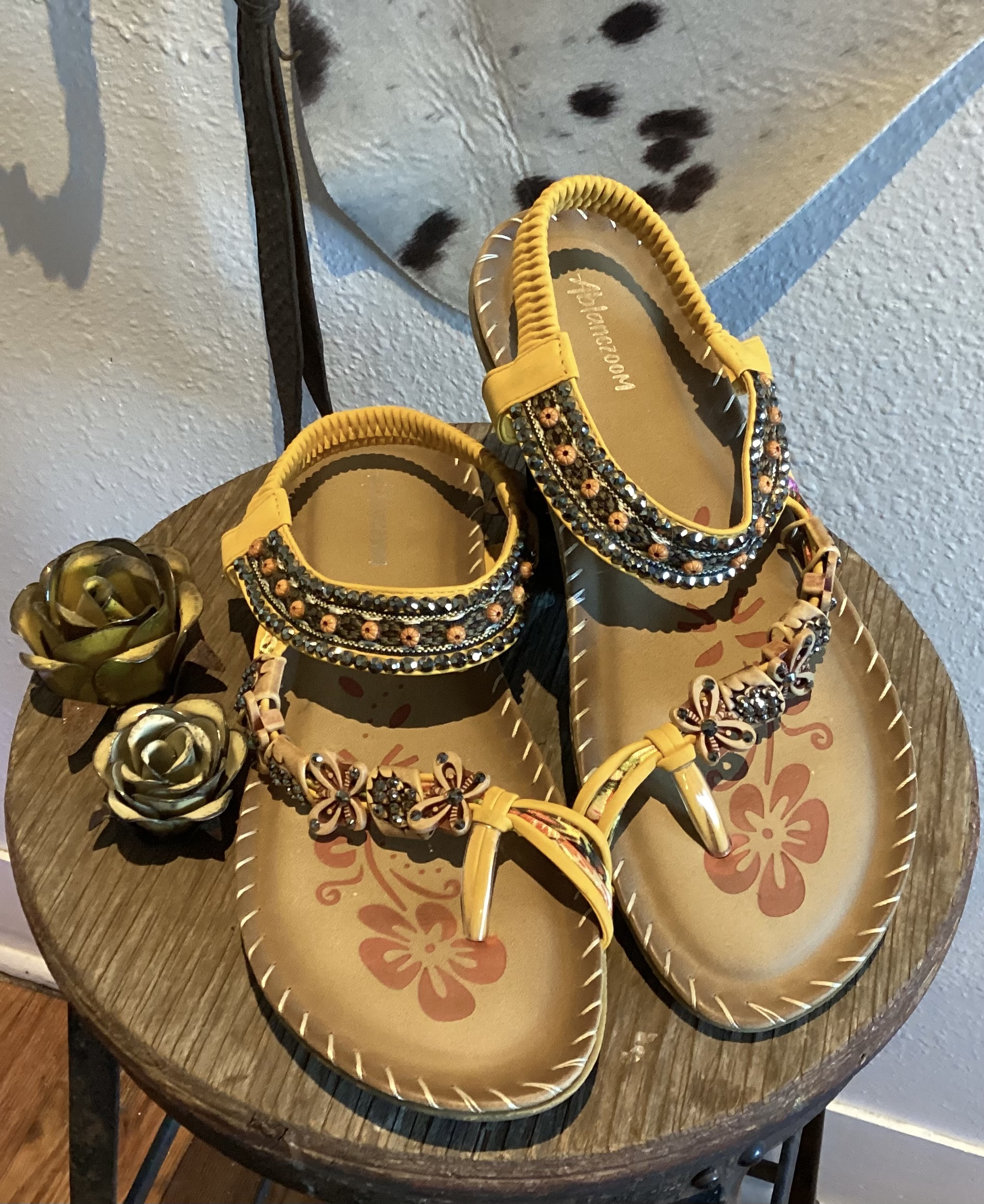 Super comfy, yellow sparkle, boho sandal. Size 9/10