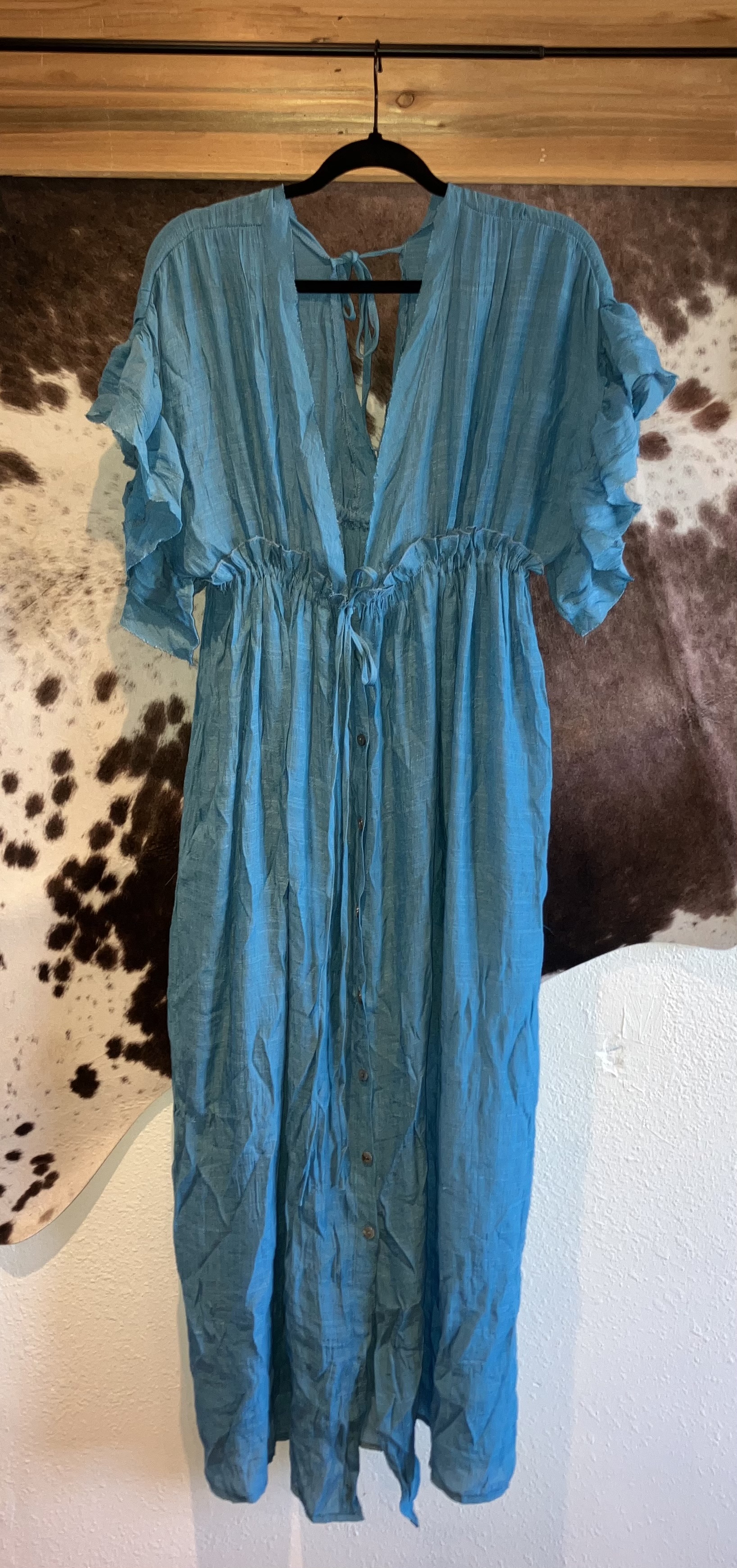 Crafted with a soft, breathable fabric, our plunge dress is perfect for those warm summer days or breezy evenings. The beautiful teal color adds a refreshing pop to your wardrobe, while the western boho vibe gives it a laid-back yet stylish appeal. Whether you're heading to a casual brunch with friends or a night out on the town, this dress will have you looking and feeling your best.