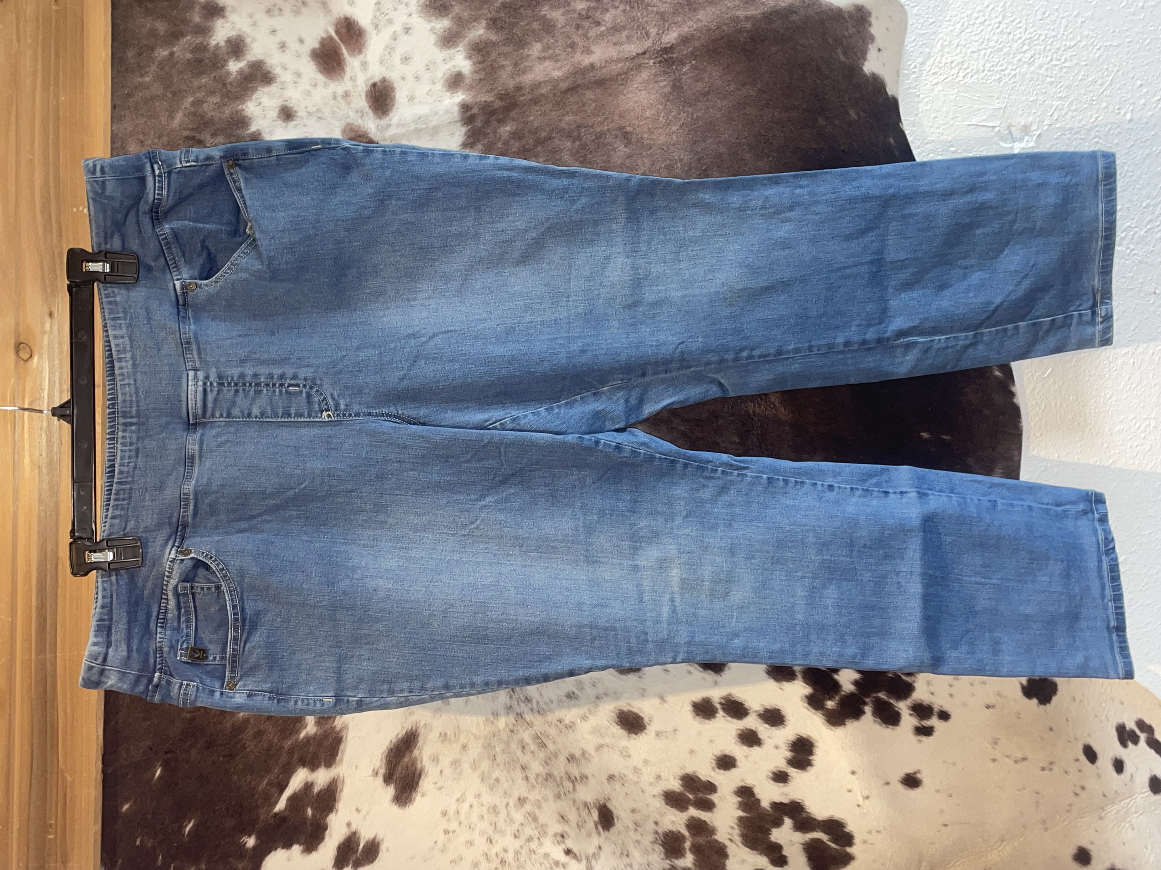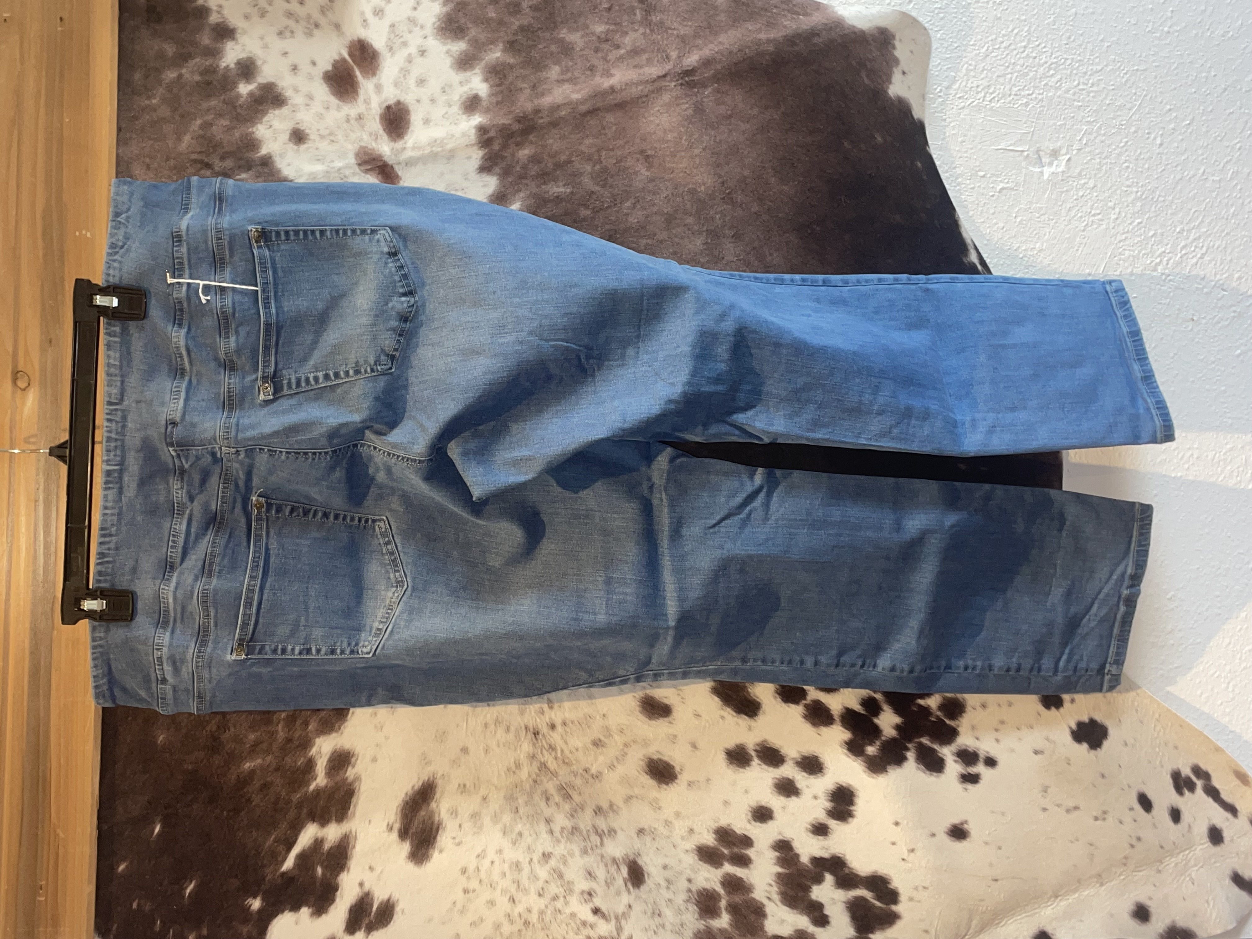 A pair of QVC’s women’s Kim Gravel “Belle” denim pull on jeans, featuring an elastic waistband and five pocket styling and a medium wash. Excellent condition. Like New.